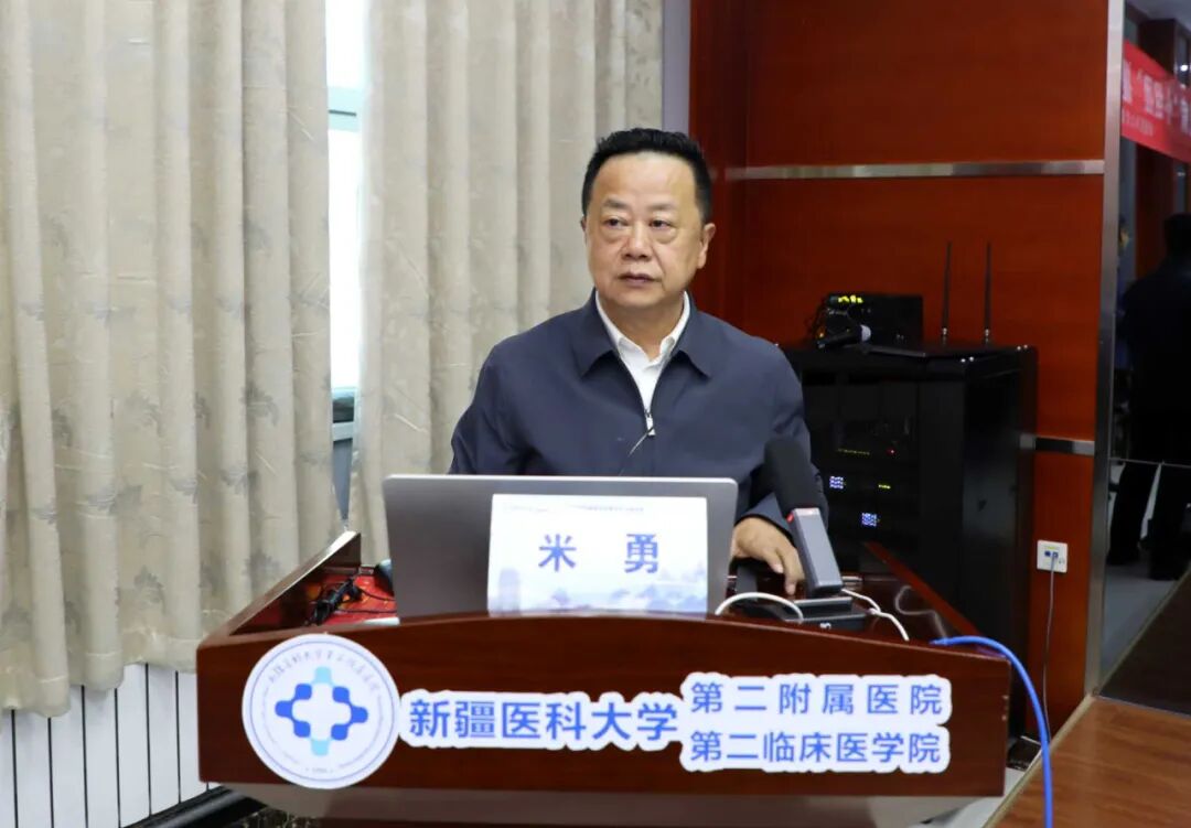 活动伊始,新疆医科大学第二附属医院党委副书记米勇致辞。他指出,神经系统疾病病因复杂、诊疗难度大,是当前医学界面临的重要挑战之一。作为国家重点专科、自治区重点专科和医院重点建设的学科,多年来,神经内科在功能神经及疑难复杂疾病诊疗方面积累了丰富经验。本次学术交流,不仅是推动学科高质量发展的重要举措,也是响应“健康中国”战略、服务新疆地区群众健康需求的实际行动。希望以此次活动为契机,进一步打破地域限制,促进疆内外诊疗理念与技术的深度融合,助力区域神经疾病诊疗水平的整体提升。