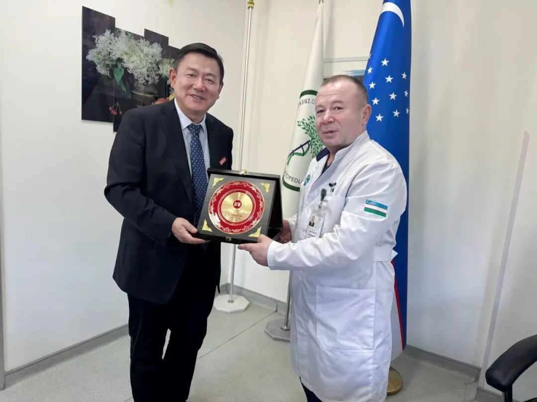 医院心脏中心、风湿免疫、消化病中心、儿科中心等专家组成代表团赴乌兹别克斯坦塔什干市开展学术与临床实践交流。心脏中心主任马翔在国际心血管病学术会议上发表演讲,分享中国胸痛中心建设经验及2025年结构性心脏病最新进展,助力乌方胸痛救治体系构建,彰显了我校心血管学科的国际影响力。专家团还走访塔什干心脏病学研究所,围绕儿童心脏病开展技术交流,建立标准化监测与康复流程,并在联合病例研究、术者培训和数据共享方面达成共识。